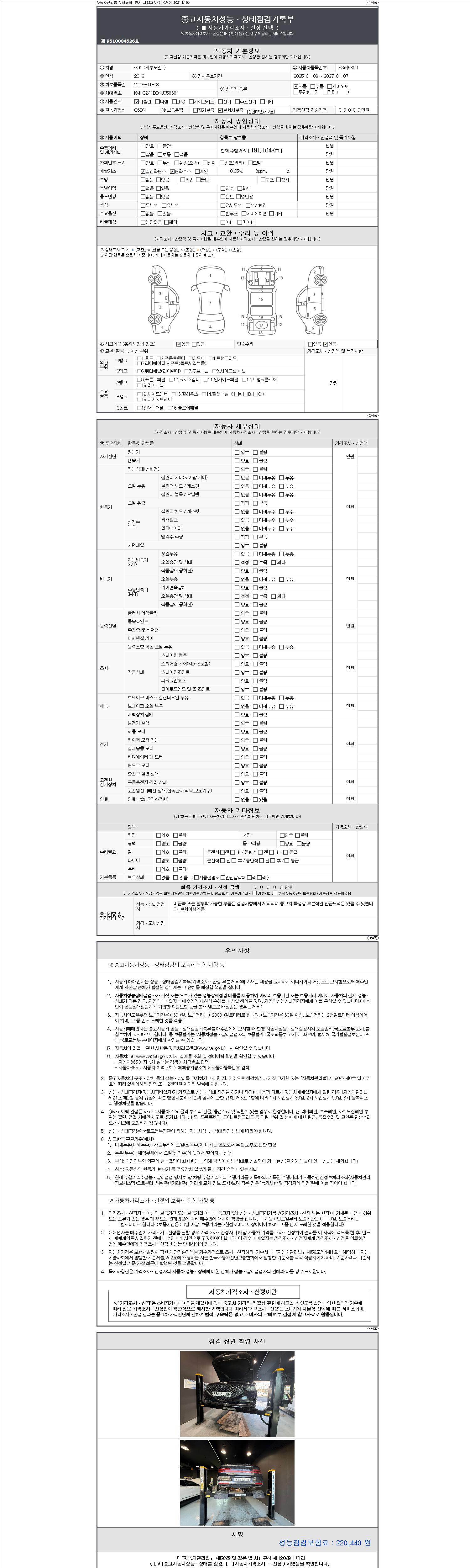 - 사고유무 : 성능기록부 참조