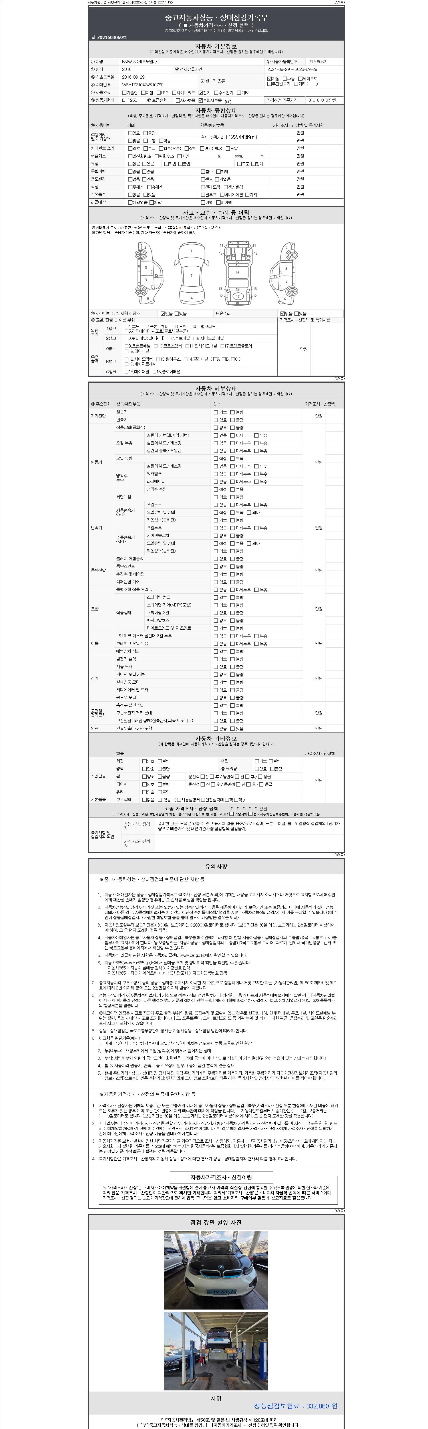 -중고자동차 매매업자를 통해 차량을 구입하실 경우 반드시 "중고자동차 성능, 상태점검 기록부"를 교뷰 받으셔야 하며, 매매업자는 반드시 의무 교부 하여야 압니다.