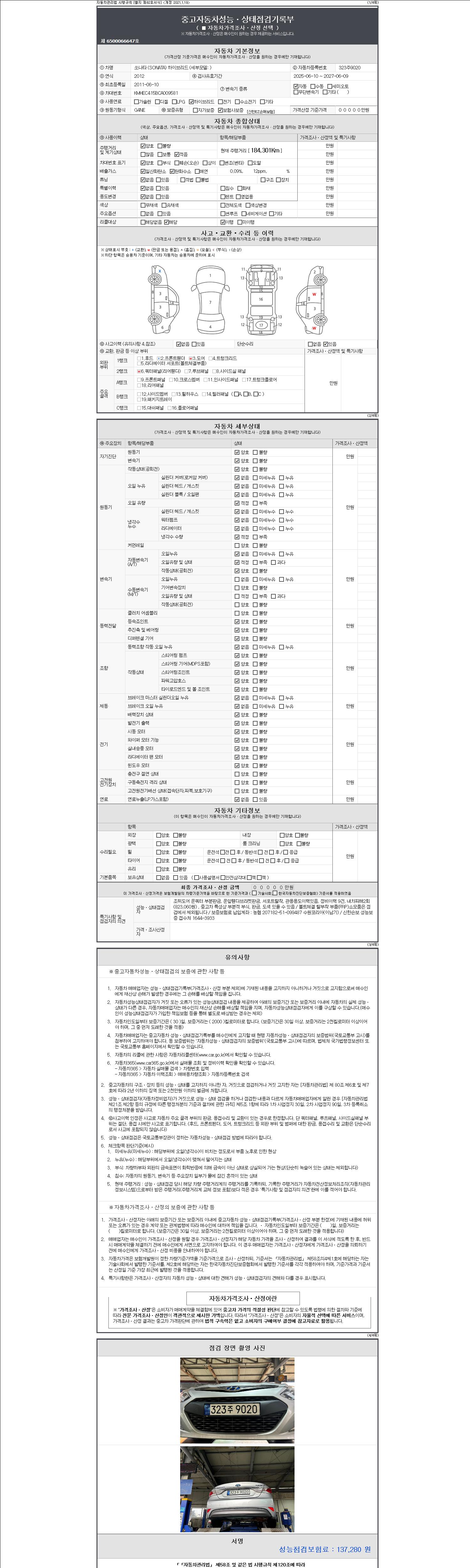 -중고자동차 매매업자를 통해 차량을 구입하실 경우 반드시 "중고자동차 성능, 상태점검 기록부"를 교뷰 받으셔야 하며, 매매업자는 반드시 의무 교부 하여야 압니다.