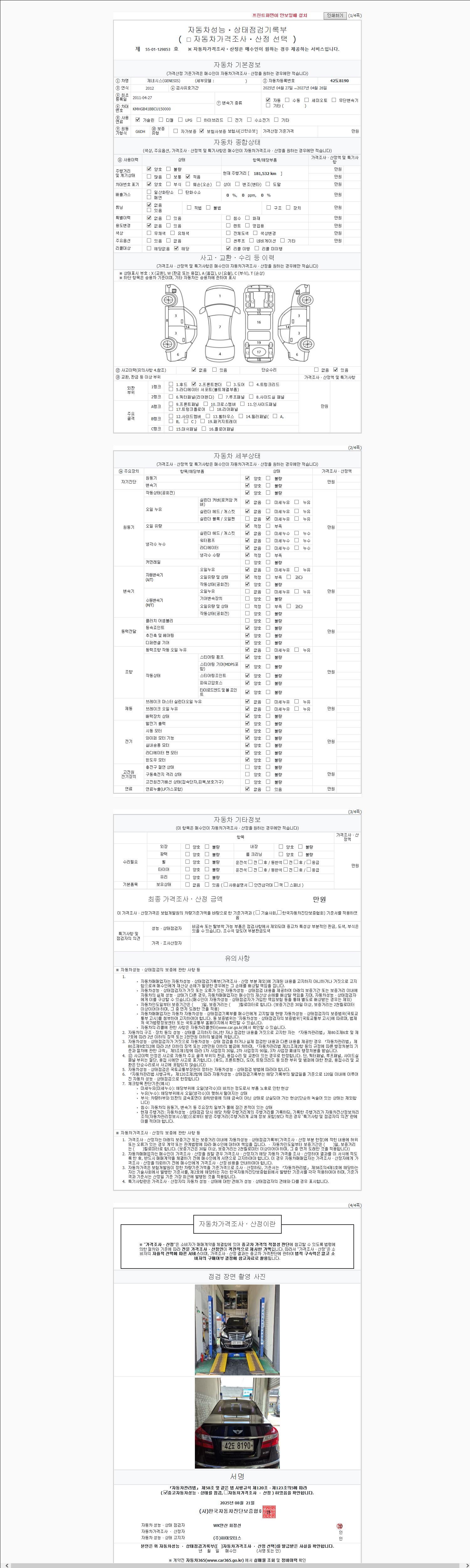 - 2. 차량 등록증이나 성능점검지 등을 상담자에게 요청및 확인하시고 사전에 미리 점검 하시기를 권유드립니다.