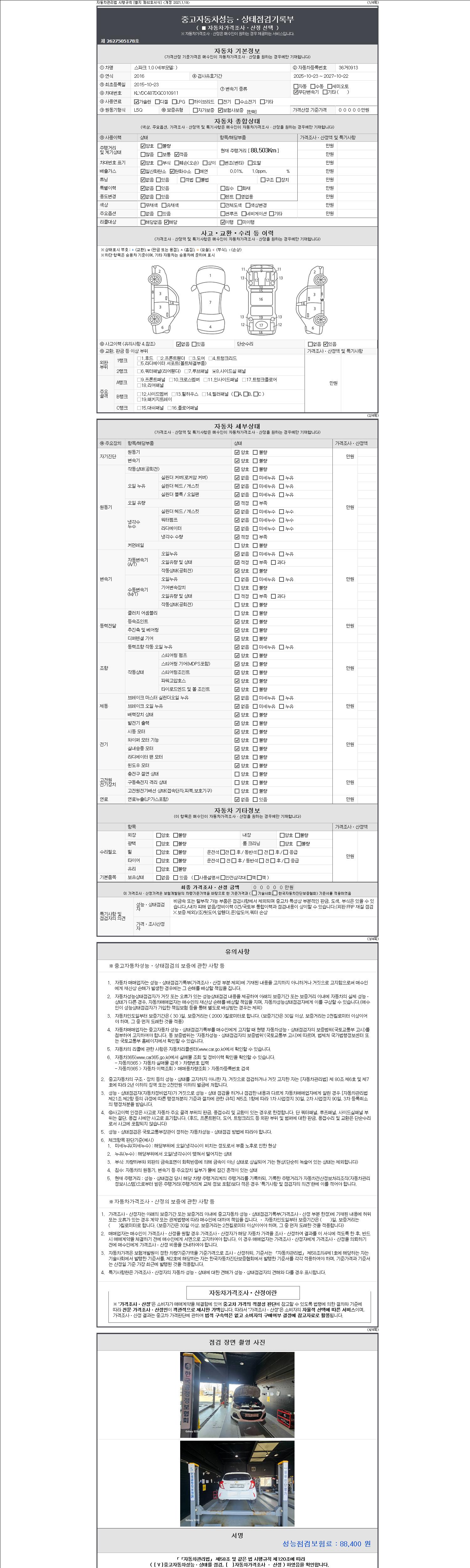 - 2. 차량 등록증이나 성능점검지 등을 상담자에게 요청및 확인하시고 사전에 미리 점검 하시기를 권유드립니다.