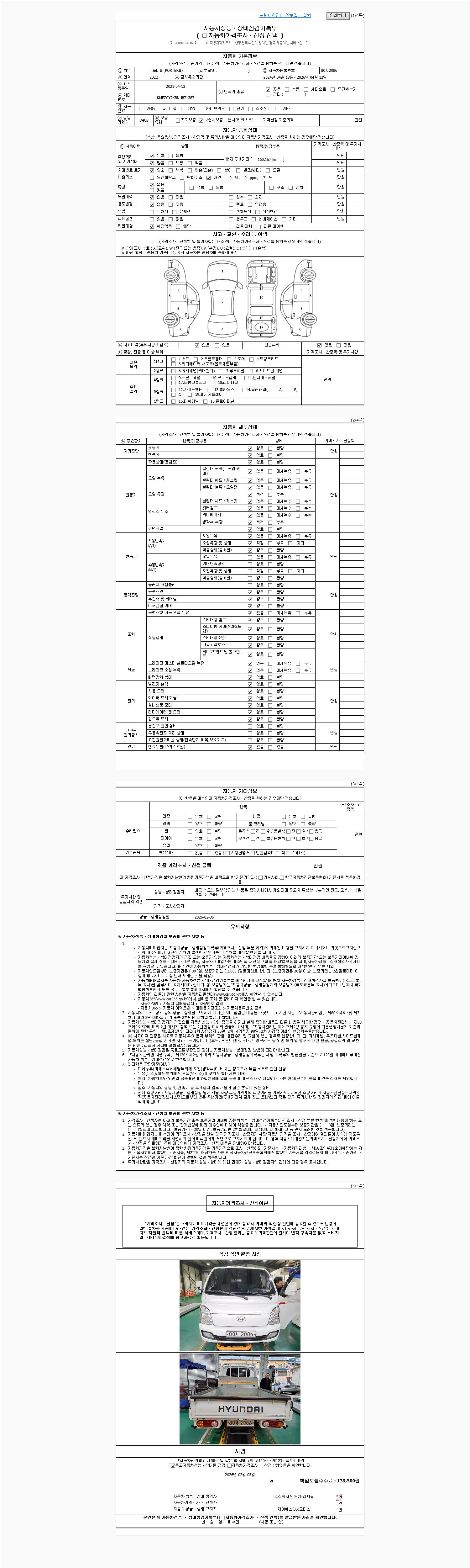 - 사고유무 : 성능기록부 참조
