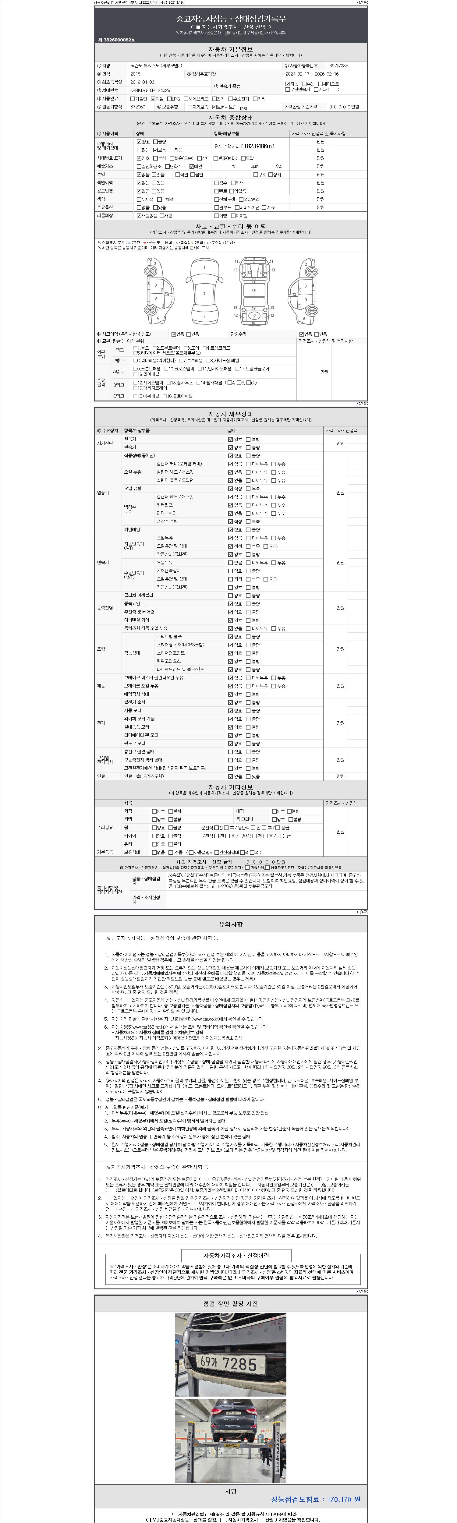 - 2. 차량 등록증이나 성능점검지 등을 상담자에게 요청및 확인하시고 사전에 미리 점검 하시기를 권유드립니다.