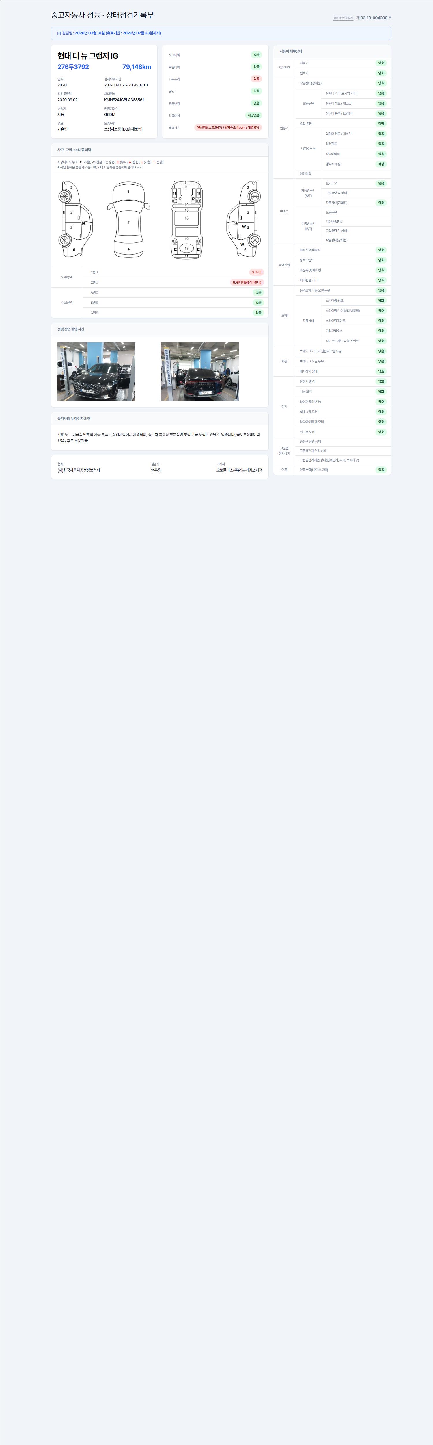 - 2. 차량 등록증이나 성능점검지 등을 상담자에게 요청및 확인하시고 사전에 미리 점검 하시기를 권유드립니다.