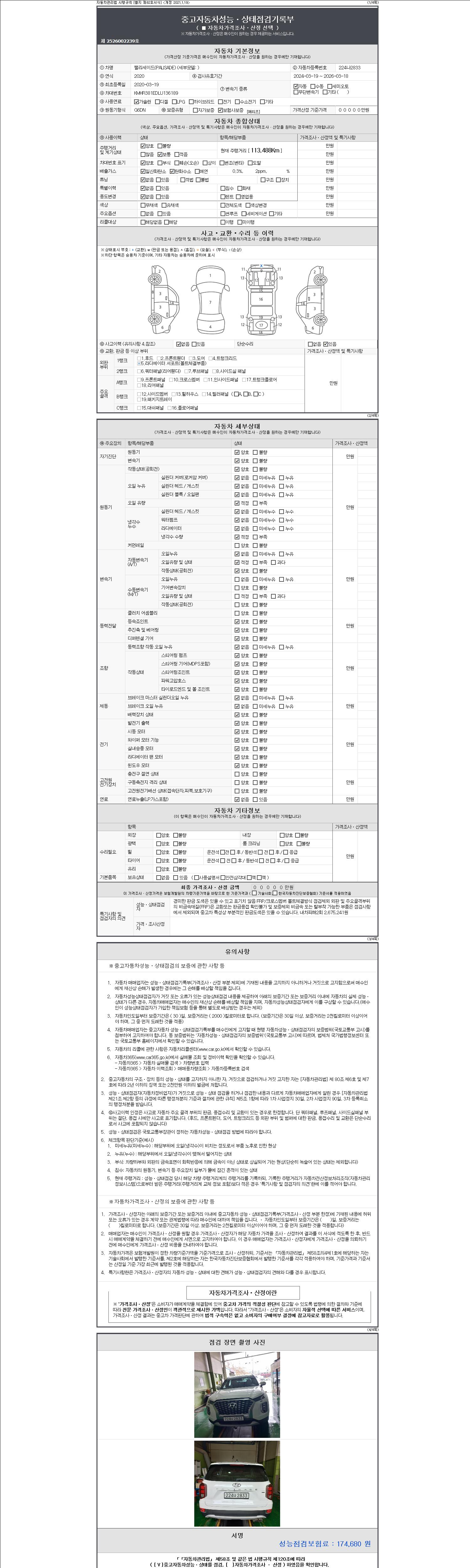 - 사고유무 : 성능기록부 참조