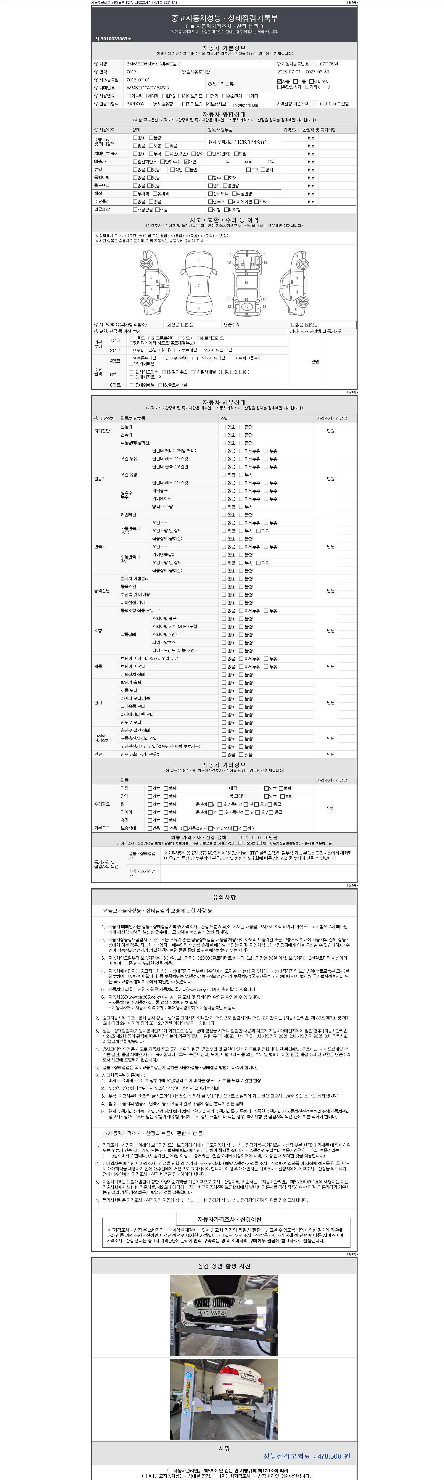 -중고자동차 매매업자를 통해 차량을 구입하실 경우 반드시 "중고자동차 성능, 상태점검 기록부"를 교뷰 받으셔야 하며, 매매업자는 반드시 의무 교부 하여야 압니다.