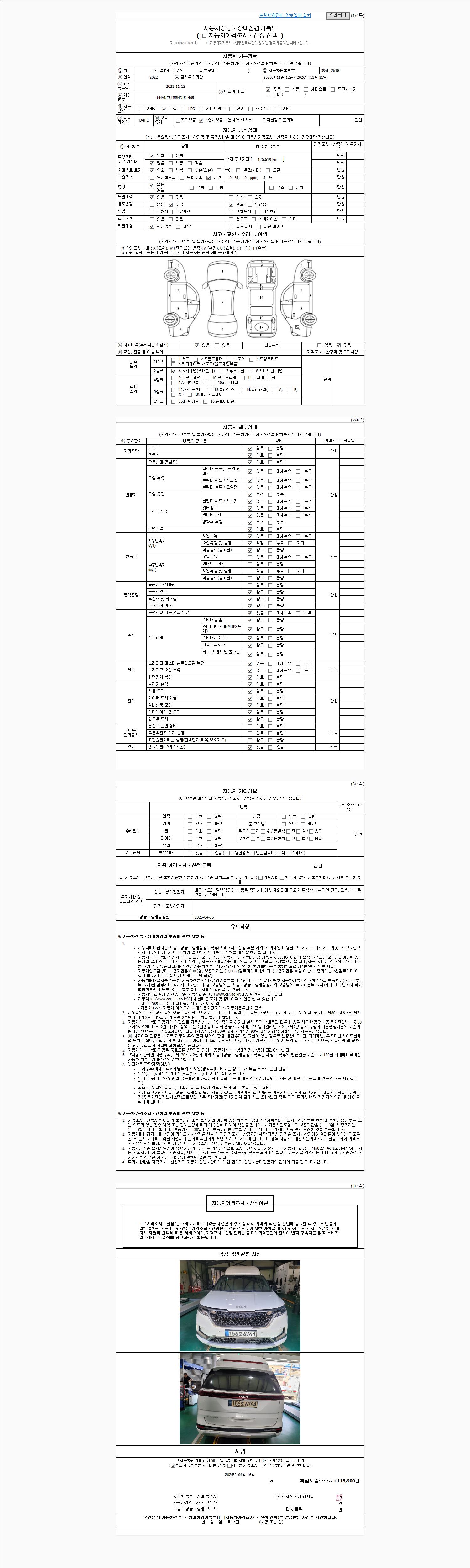 - 2. 차량 등록증이나 성능점검지 등을 상담자에게 요청및 확인하시고 사전에 미리 점검 하시기를 권유드립니다.