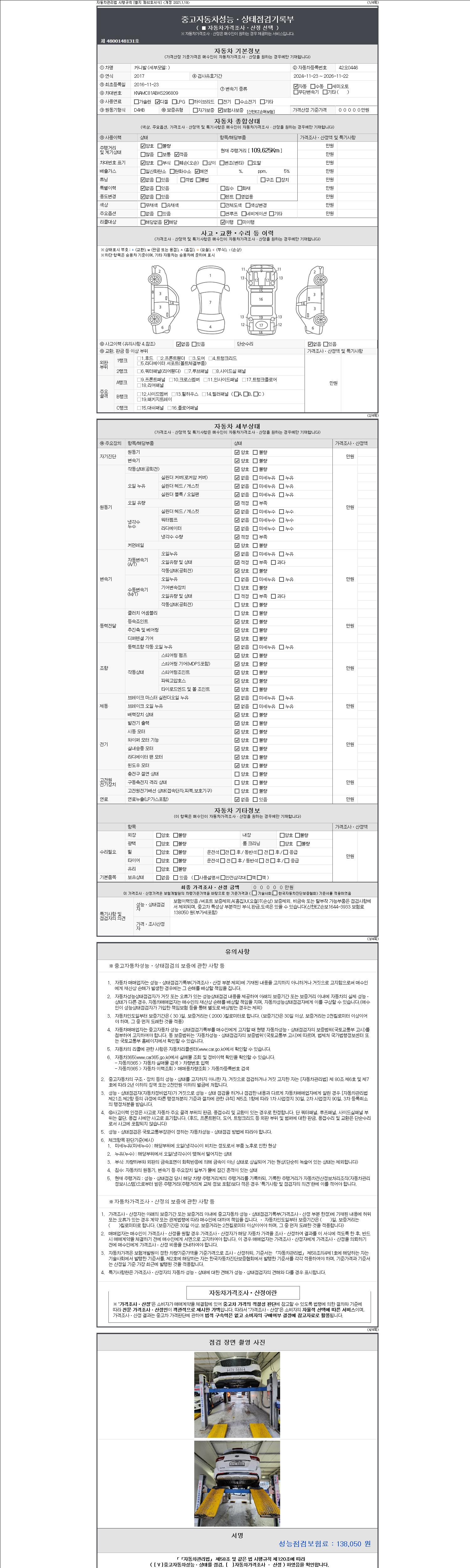 - 2. 차량 등록증이나 성능점검지 등을 상담자에게 요청및 확인하시고 사전에 미리 점검 하시기를 권유드립니다.
