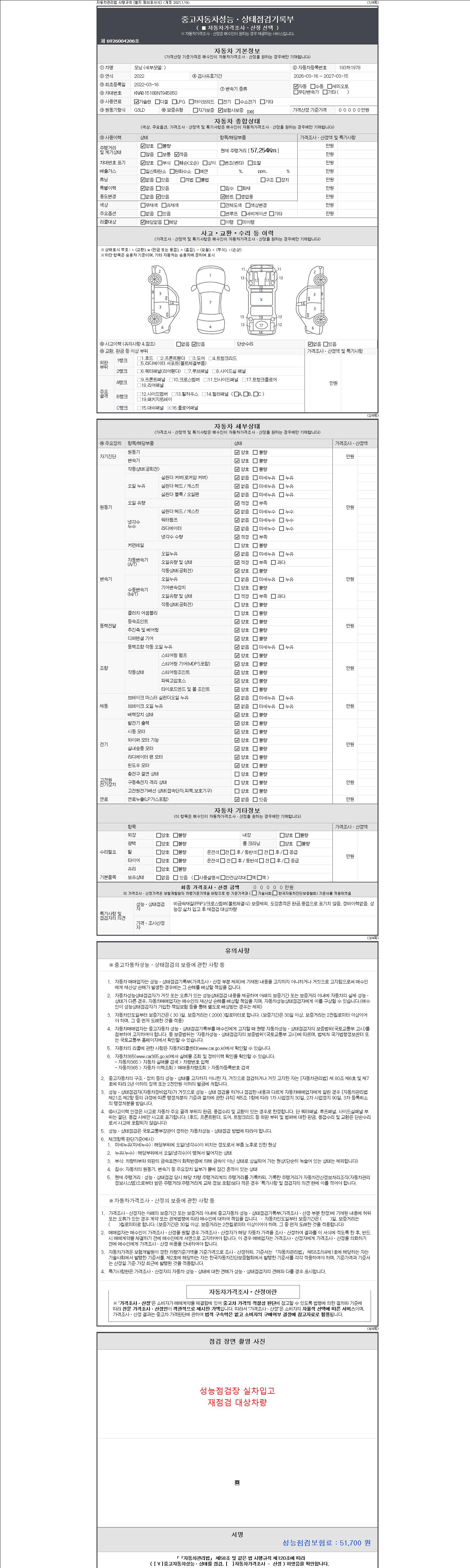 - 2. 차량 등록증이나 성능점검지 등을 상담자에게 요청및 확인하시고 사전에 미리 점검 하시기를 권유드립니다.