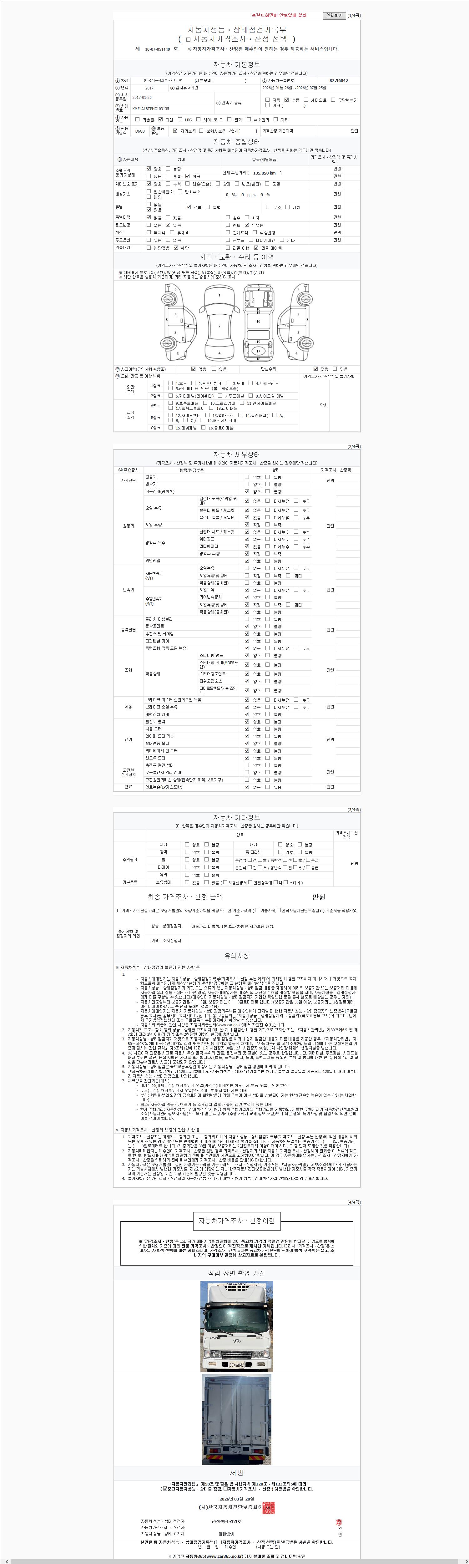 | 주행거리 | 580,669 km | 차량번호 | 87가6042 | 사고유무 | 성능기록부 참조 | 제시번호 | 제 2147483647 호 |