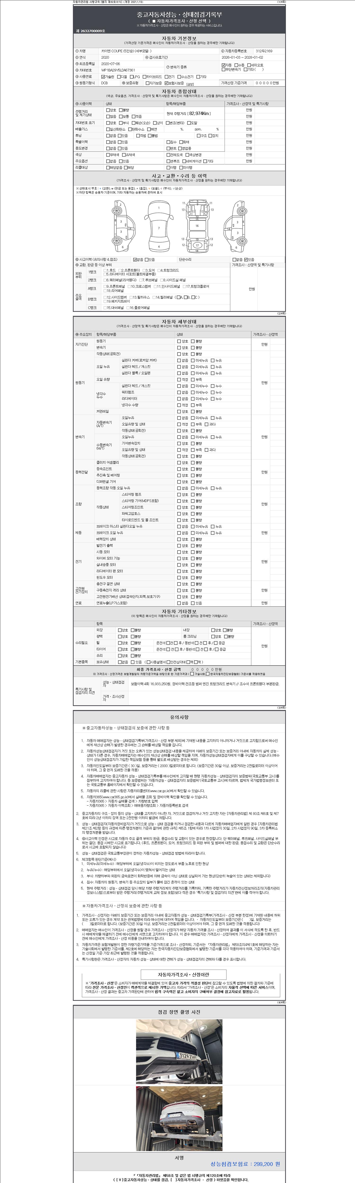 - 사고유무 : 성능기록부 참조