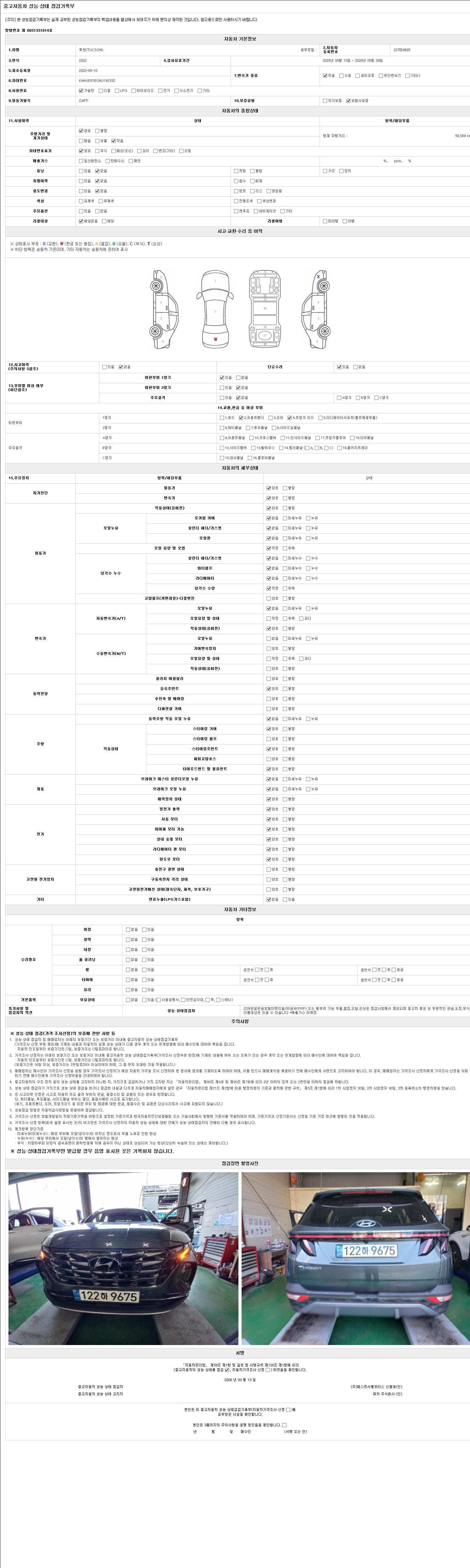 - 2. 차량 등록증이나 성능점검지 등을 상담자에게 요청및 확인하시고 사전에 미리 점검 하시기를 권유드립니다.