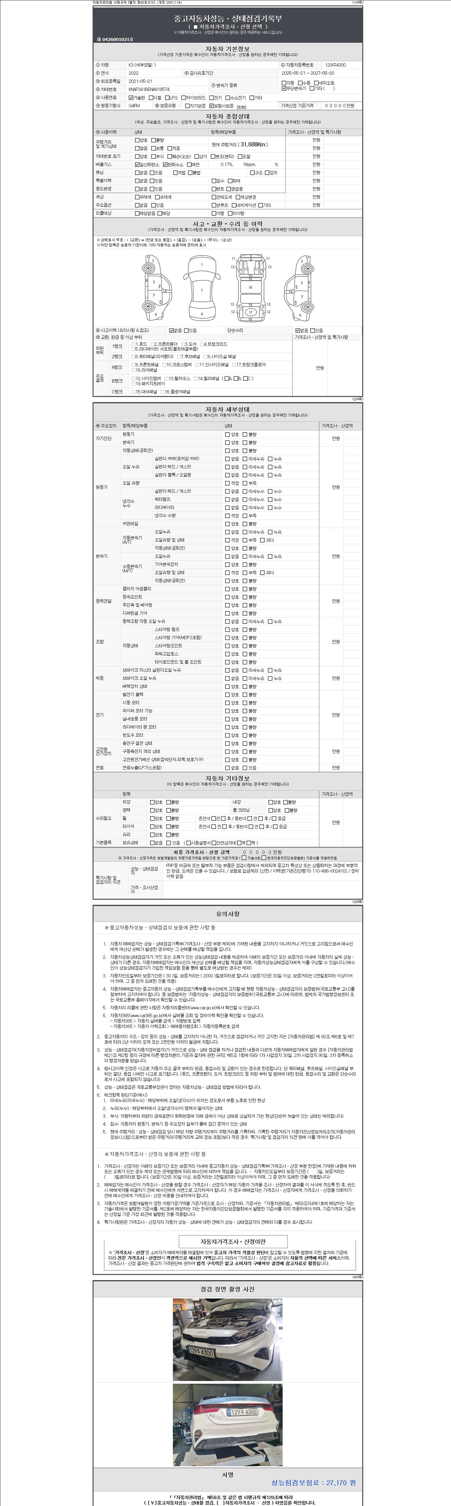 - 2. 차량 등록증이나 성능점검지 등을 상담자에게 요청및 확인하시고 사전에 미리 점검 하시기를 권유드립니다.