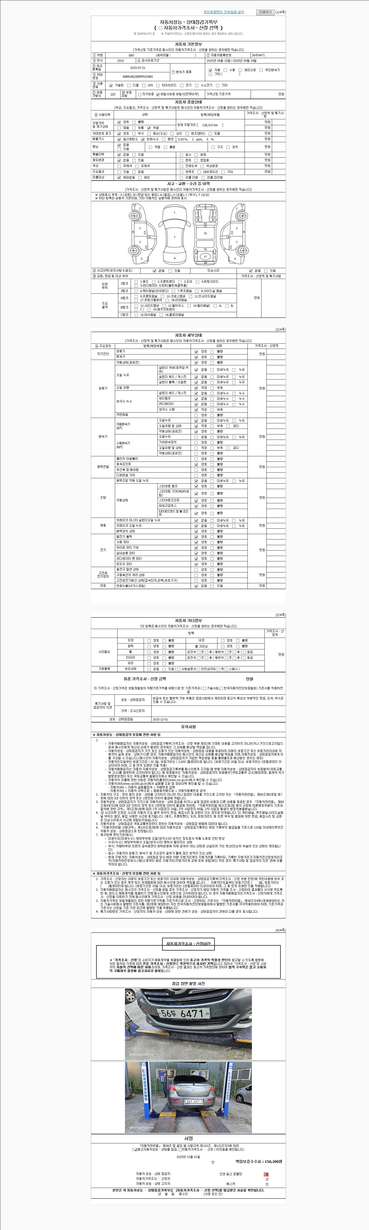 -중고자동차 매매업자를 통해 차량을 구입하실 경우 반드시 "중고자동차 성능, 상태점검 기록부"를 교뷰 받으셔야 하며, 매매업자는 반드시 의무 교부 하여야 압니다.