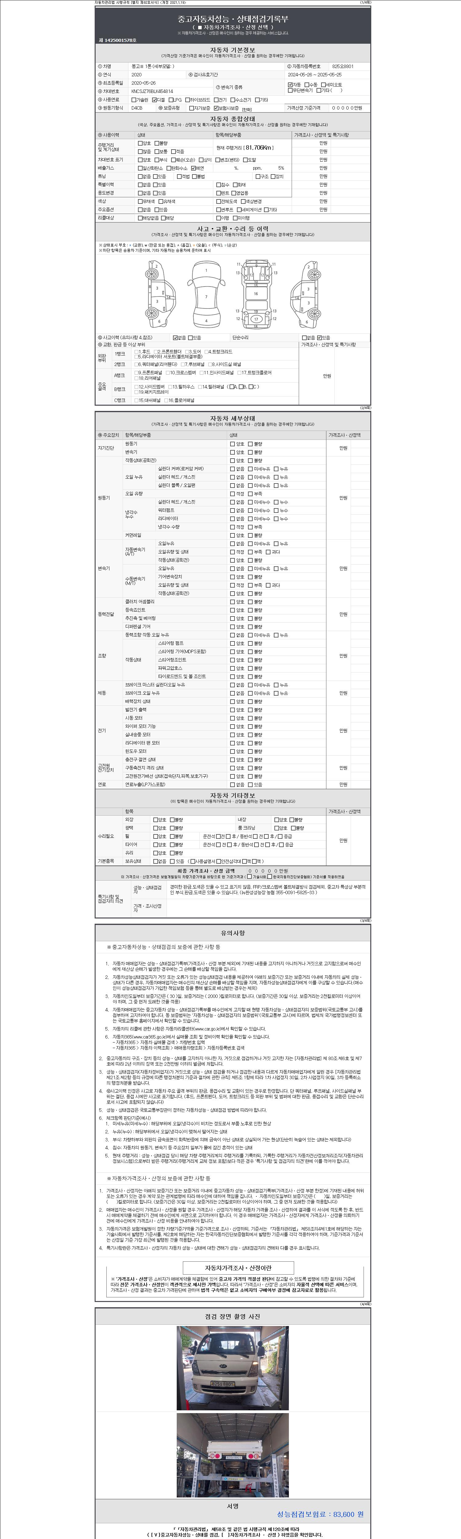 | 주행거리 | 81,611 km | 차량번호 | 825오8801 | 사고유무 | 성능기록부 참조 | 제시번호 | 제 2147483647 호 |