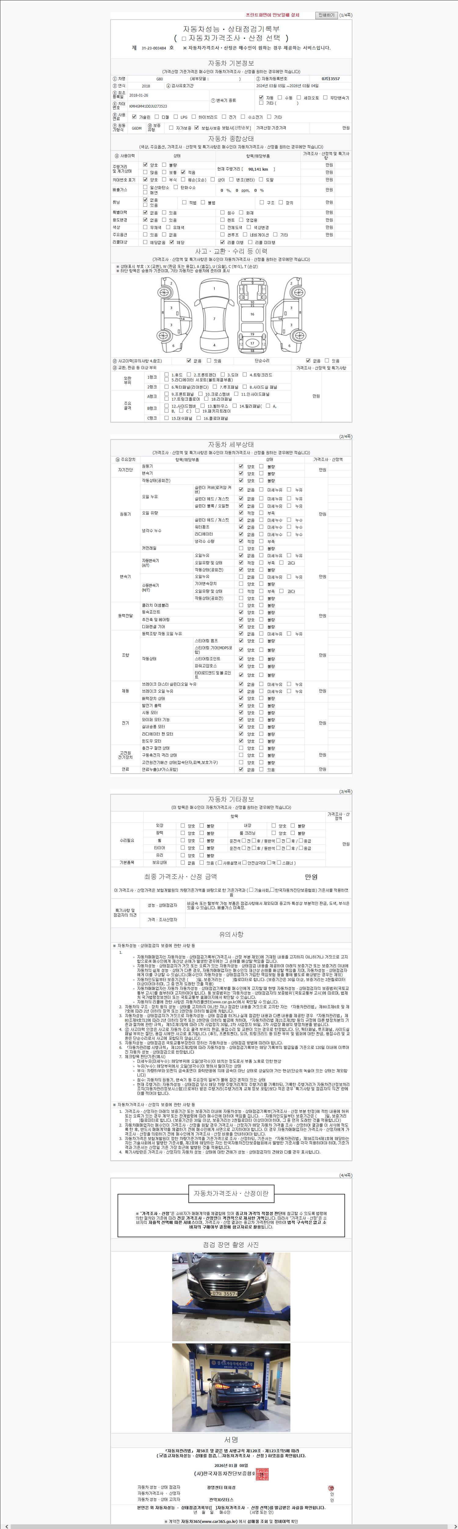 | 주행거리 | 90,118 km | 차량번호 | 07더3557 | 사고유무 | 성능기록부 참조 | 제시번호 | 제 2147483647 호 |