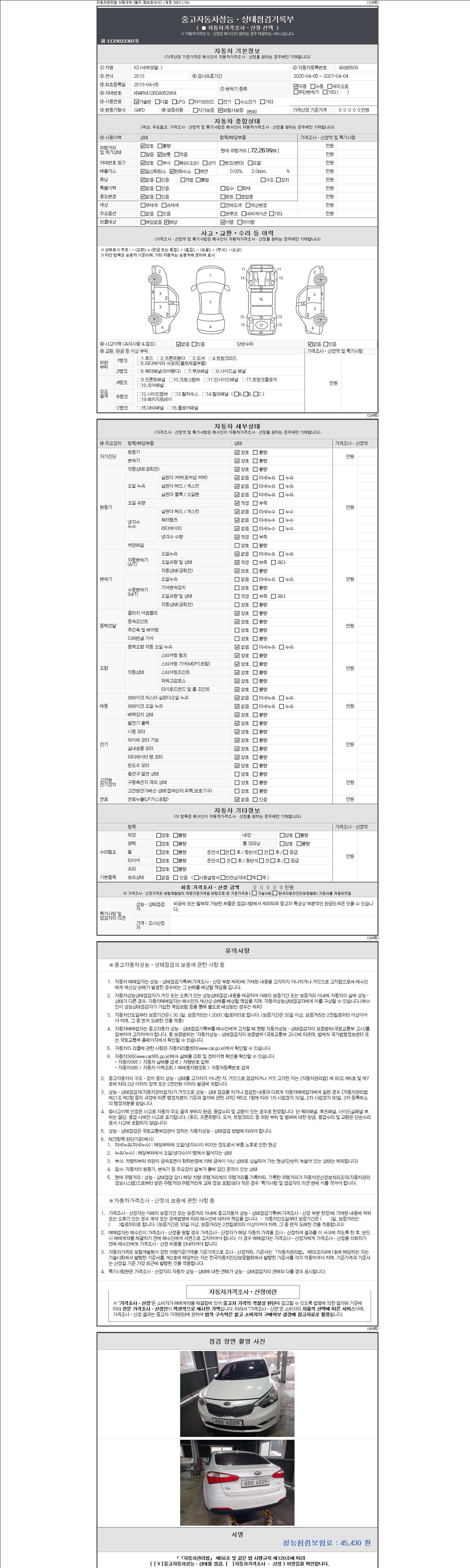 -중고자동차 매매업자를 통해 차량을 구입하실 경우 반드시 "중고자동차 성능, 상태점검 기록부"를 교뷰 받으셔야 하며, 매매업자는 반드시 의무 교부 하여야 압니다.