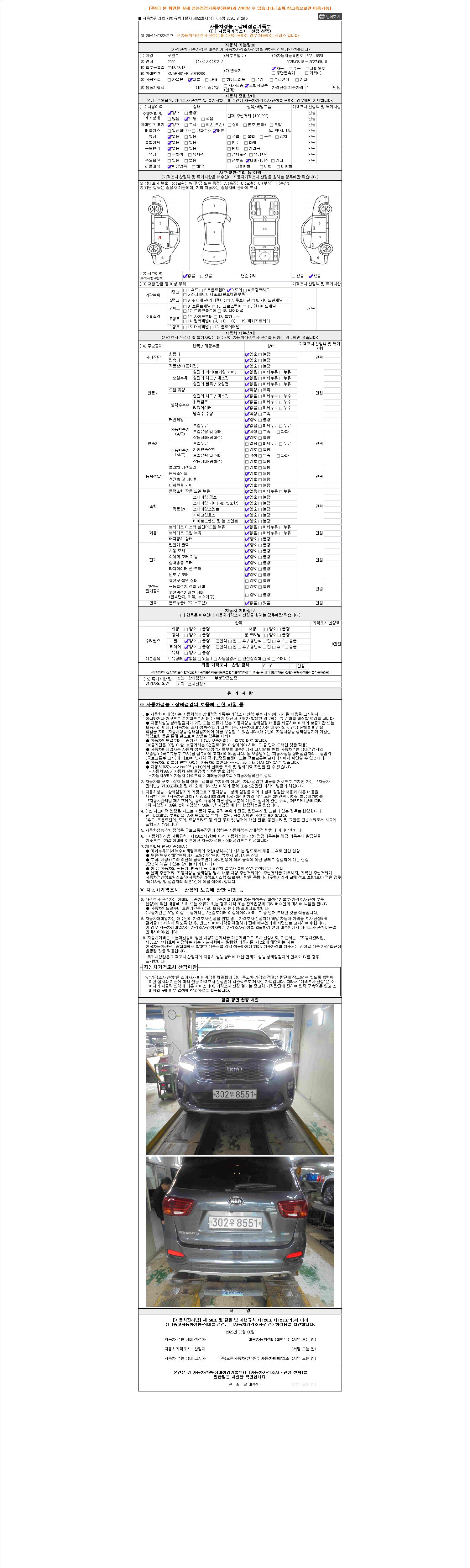- 2. 차량 등록증이나 성능점검지 등을 상담자에게 요청및 확인하시고 사전에 미리 점검 하시기를 권유드립니다.