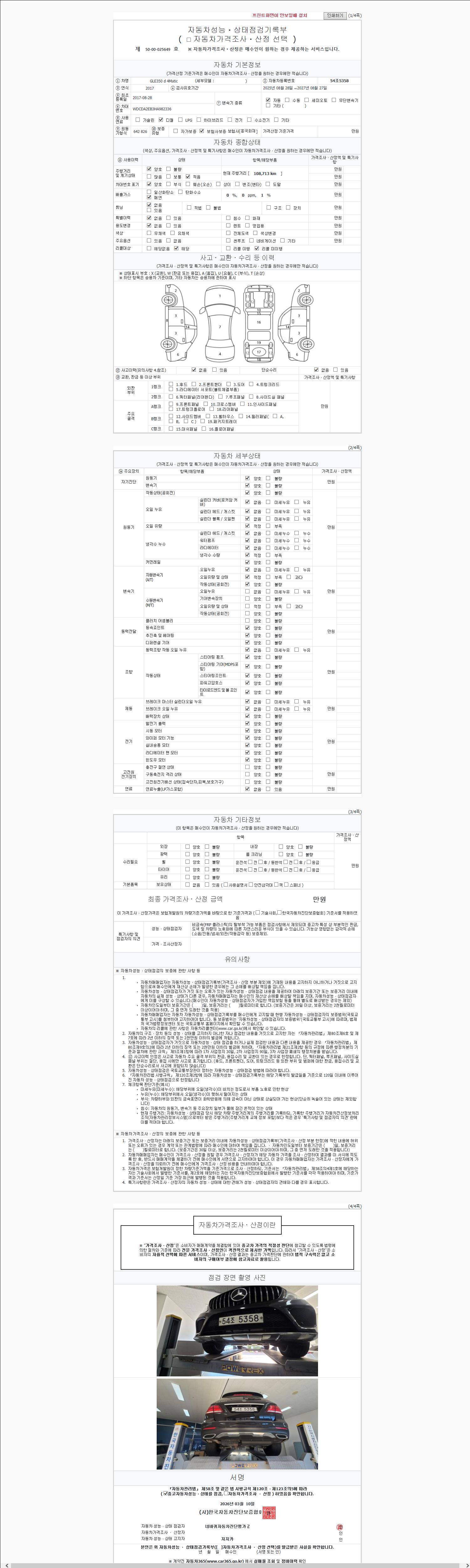 - 2. 차량 등록증이나 성능점검지 등을 상담자에게 요청및 확인하시고 사전에 미리 점검 하시기를 권유드립니다.
