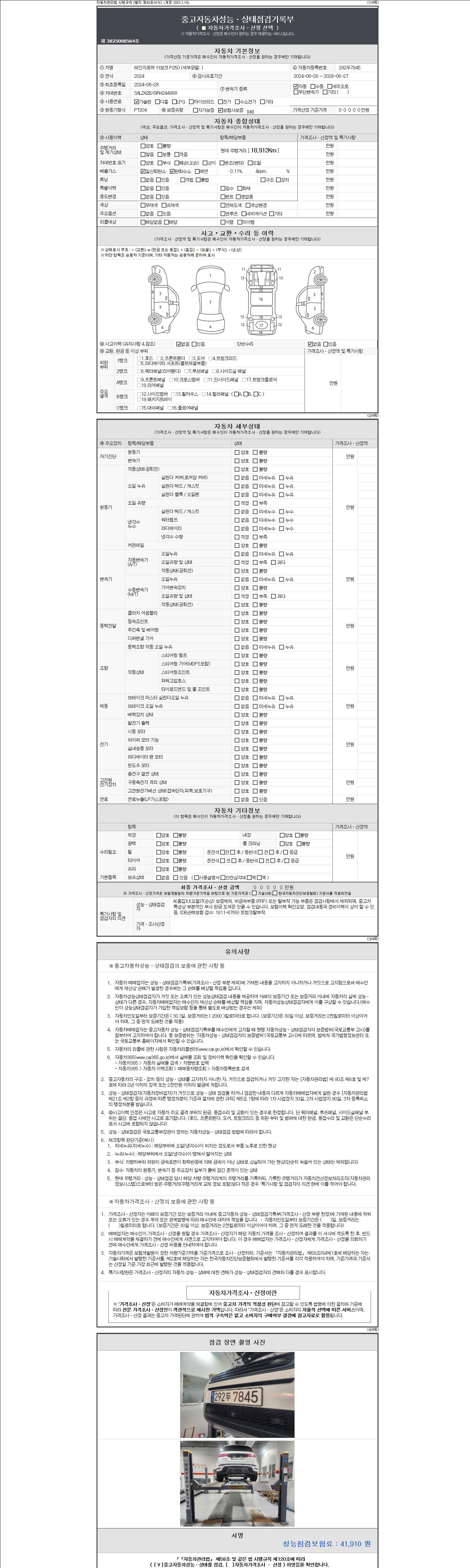 | 주행거리 | 18,912 km | 차량번호 | 292두7845 | 사고유무 | 성능기록부 참조 | 제시번호 | 제 2147483647 호 |