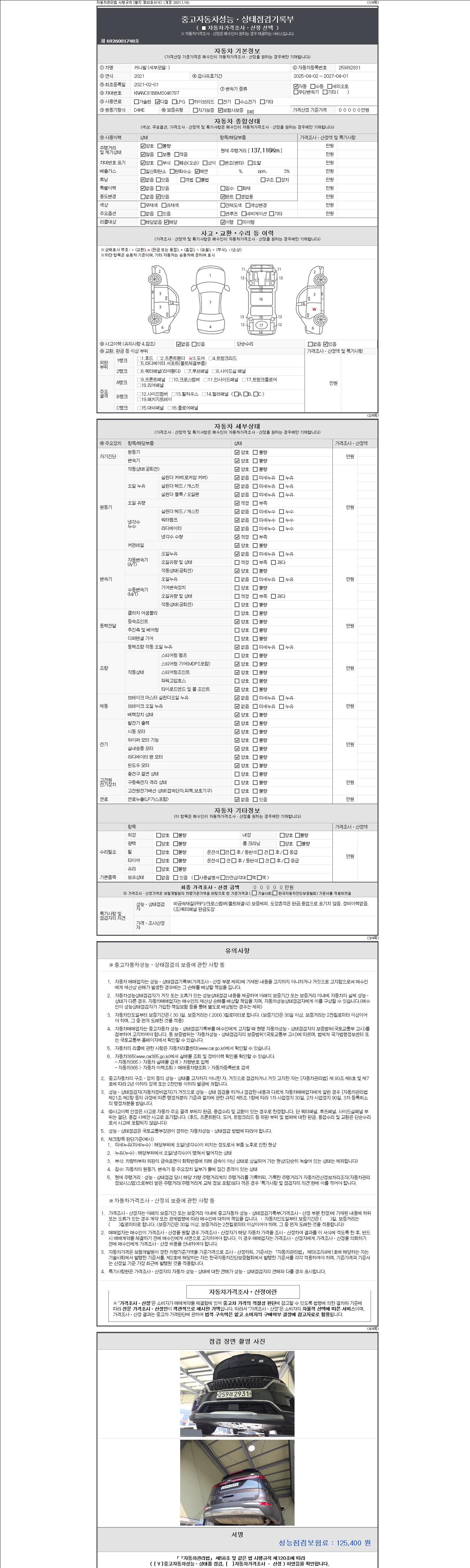 | 주행거리 | 137,175 km | 차량번호 | 259러2931 | 사고유무 | 성능기록부 참조 | 제시번호 | 제 2147483647 호 |
