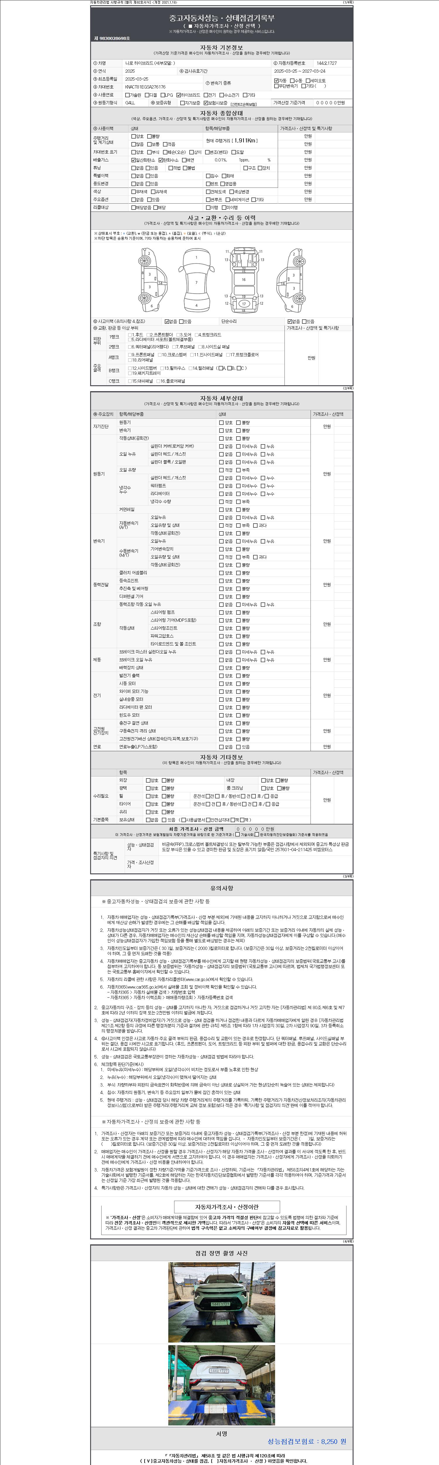 - 사고유무 : 성능기록부 참조