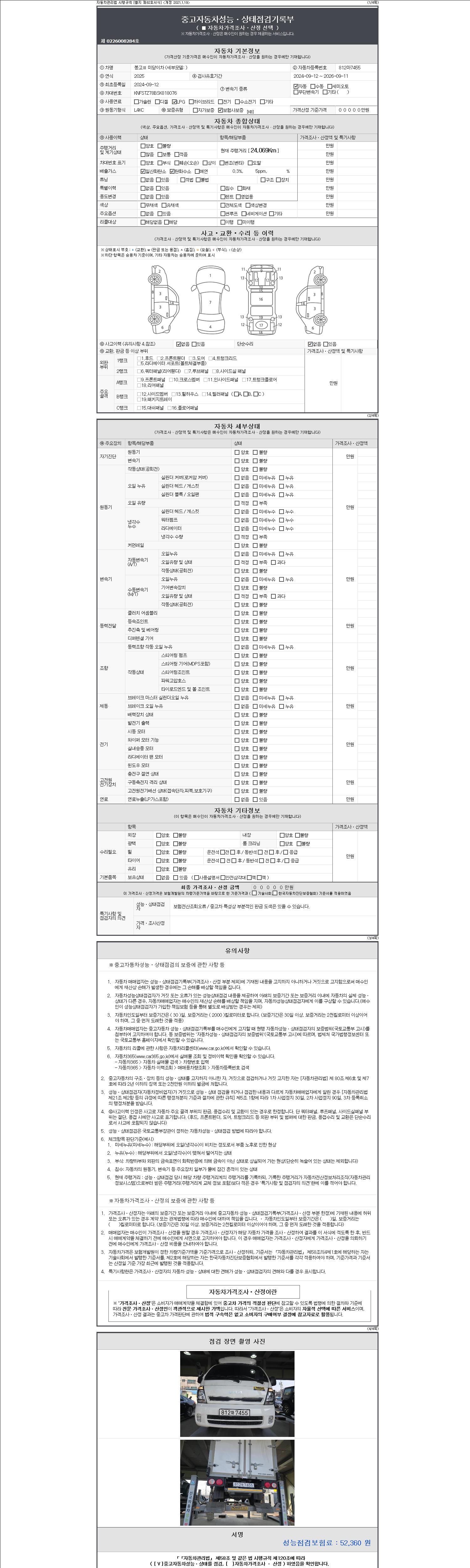 | 주행거리 | 24,069 km | 차량번호 | 812마7455 | 사고유무 | 성능기록부 참조 | 제시번호 | 제 2147483647 호 |