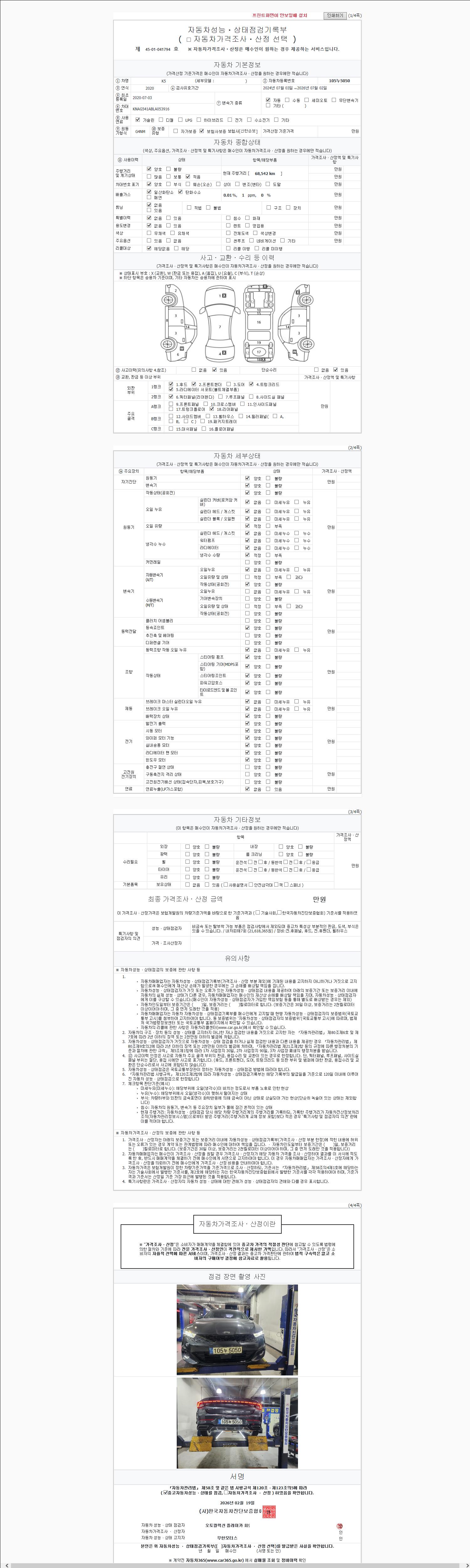 - 2. 차량 등록증이나 성능점검지 등을 상담자에게 요청및 확인하시고 사전에 미리 점검 하시기를 권유드립니다.
