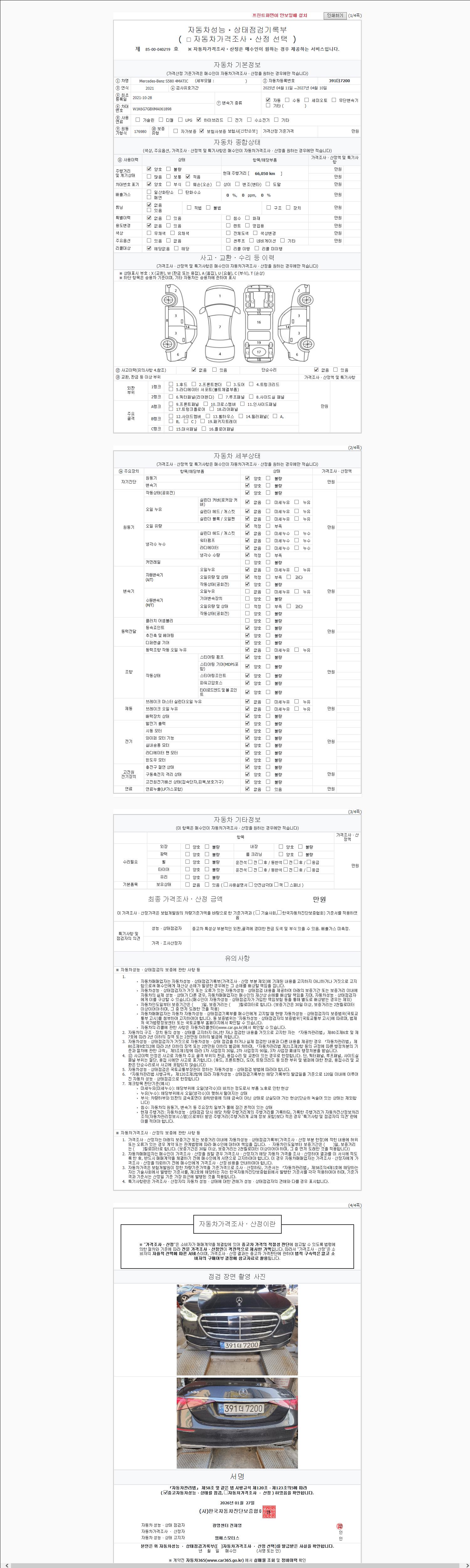 | 주행거리 | 66,050 km | 차량번호 | 391더7200 | 사고유무 | 성능기록부 참조 | 제시번호 | 제 2147483647 호 |