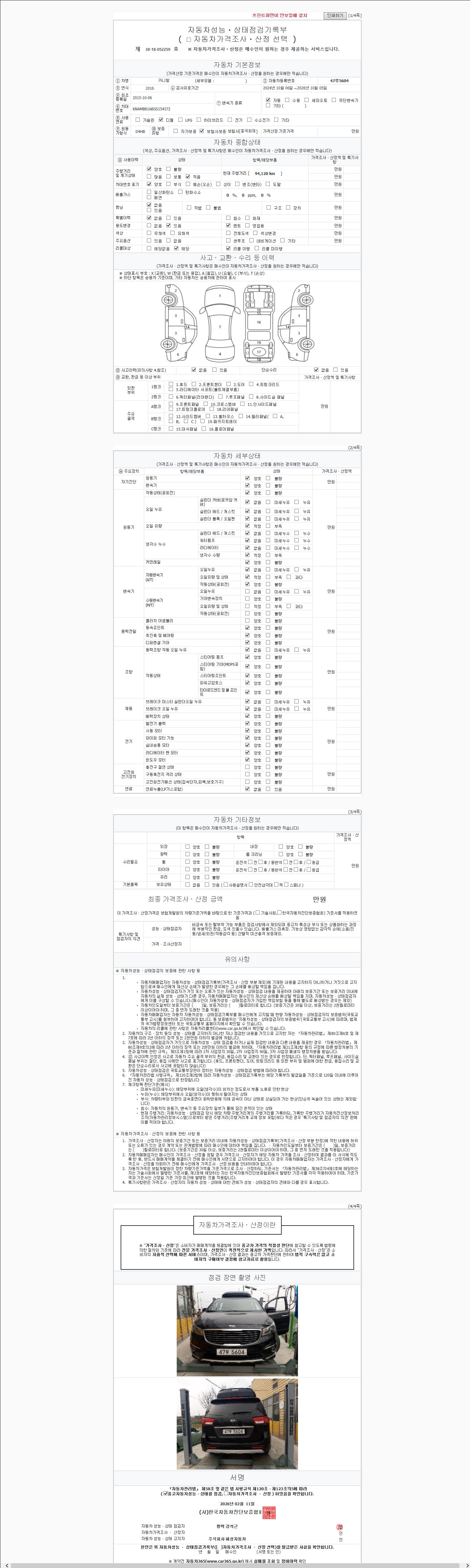 | 주행거리 | 94,120 km | 차량번호 | 47루5604 | 사고유무 | 성능기록부 참조 | 제시번호 | 제 2147483647 호 |