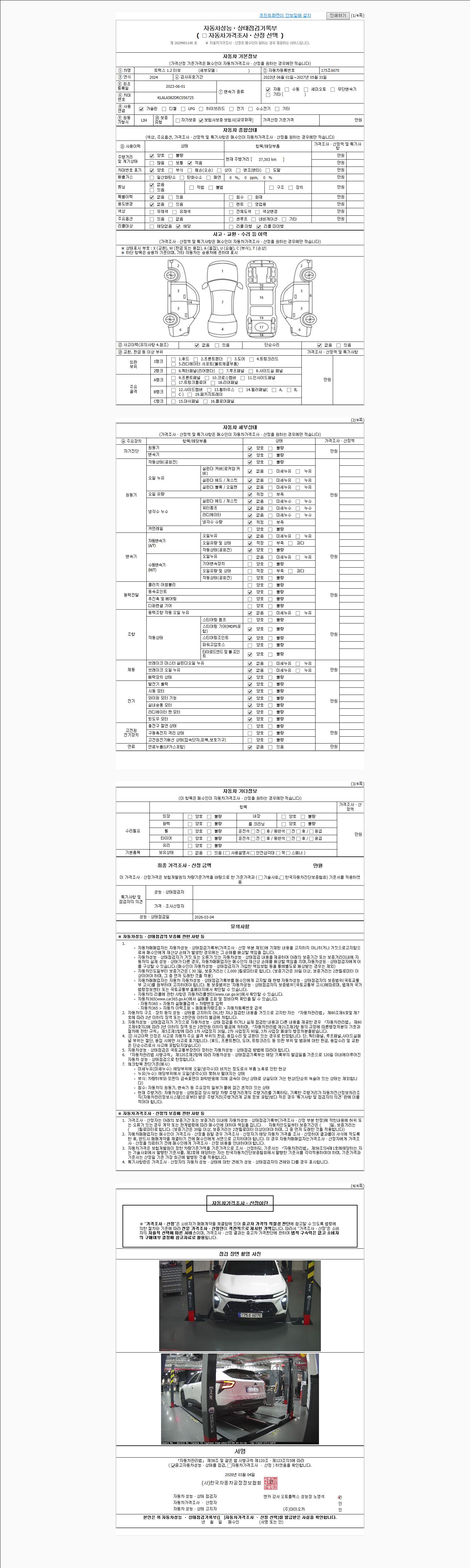 - 2. 차량 등록증이나 성능점검지 등을 상담자에게 요청및 확인하시고 사전에 미리 점검 하시기를 권유드립니다.
