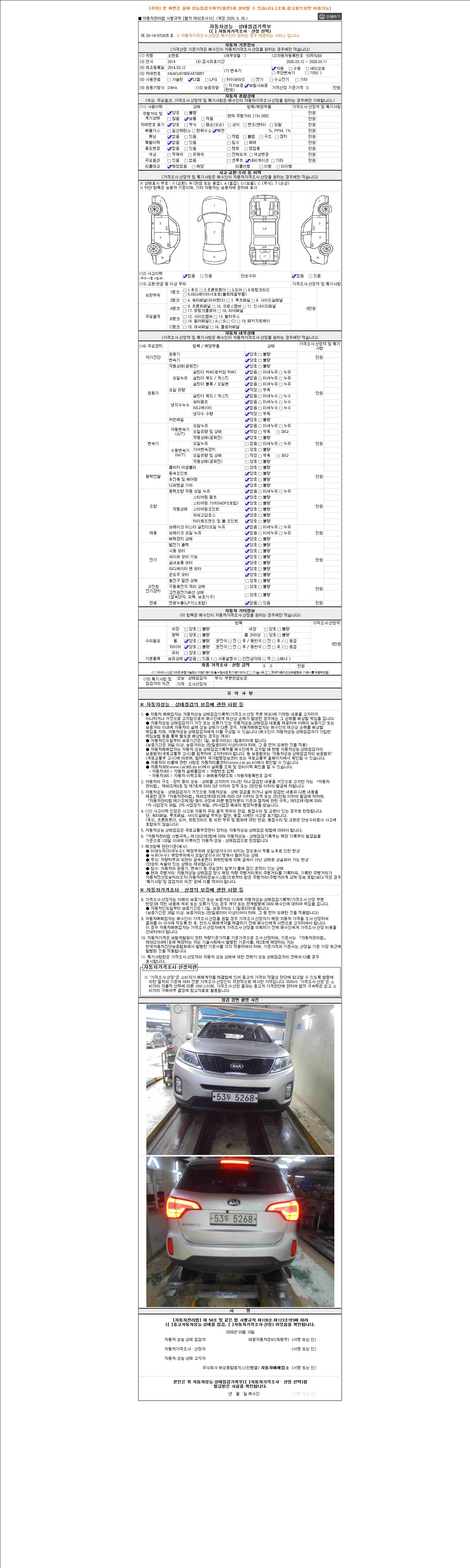 - 2. 차량 등록증이나 성능점검지 등을 상담자에게 요청및 확인하시고 사전에 미리 점검 하시기를 권유드립니다.