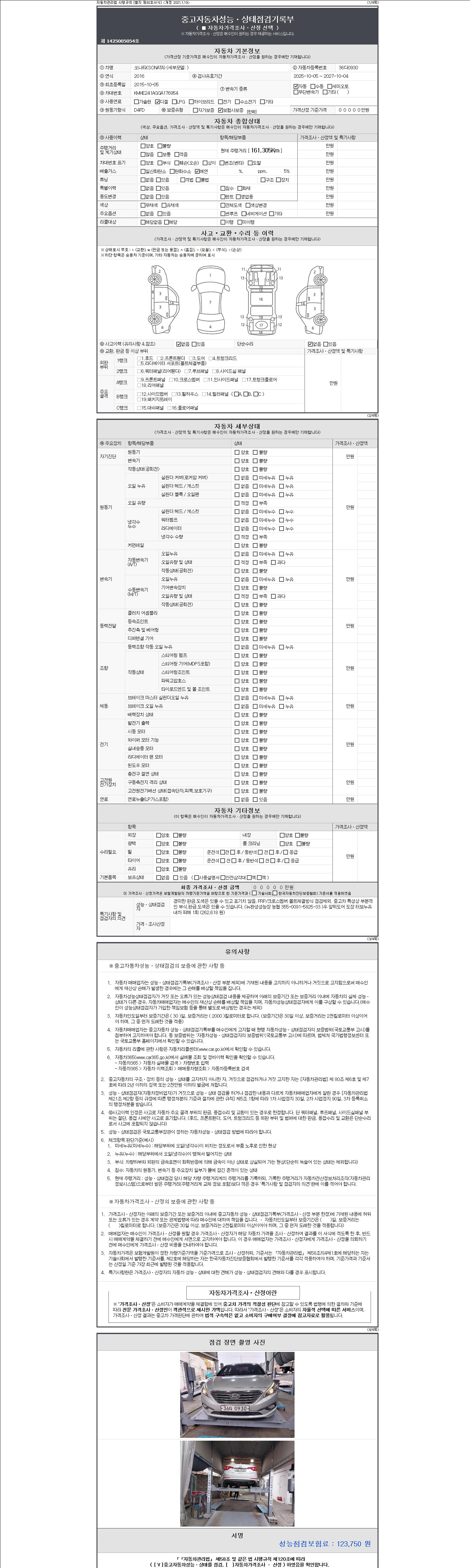 | 주행거리 | 161,305 km | 차량번호 | 36다0930 | 사고유무 | 성능기록부 참조 | 제시번호 | 제 2147483647 호 |