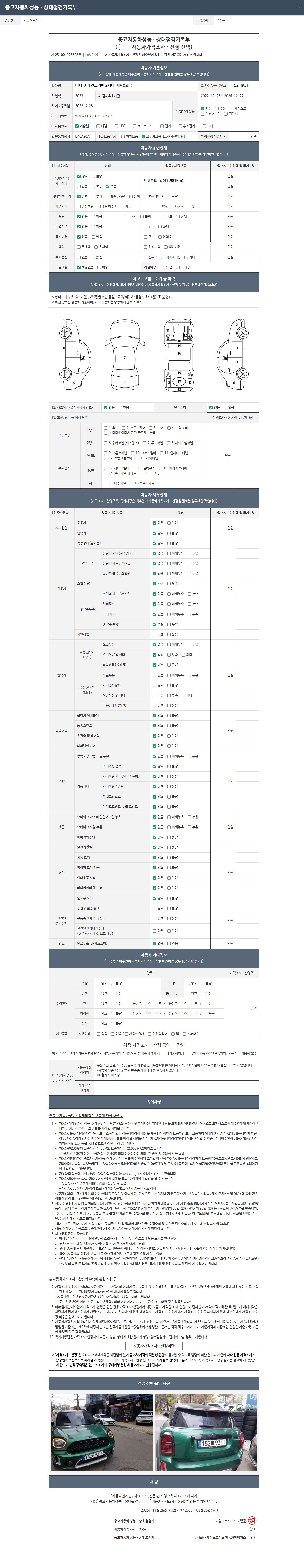 - 2. 차량 등록증이나 성능점검지 등을 상담자에게 요청및 확인하시고 사전에 미리 점검 하시기를 권유드립니다.