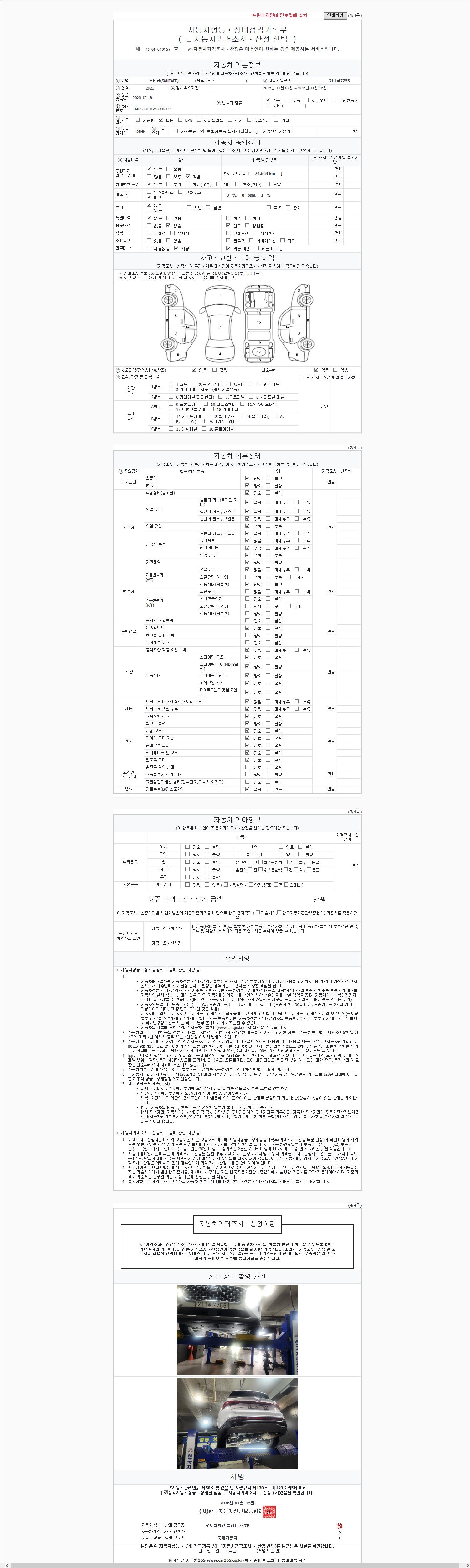 - 2. 차량 등록증이나 성능점검지 등을 상담자에게 요청및 확인하시고 사전에 미리 점검 하시기를 권유드립니다.