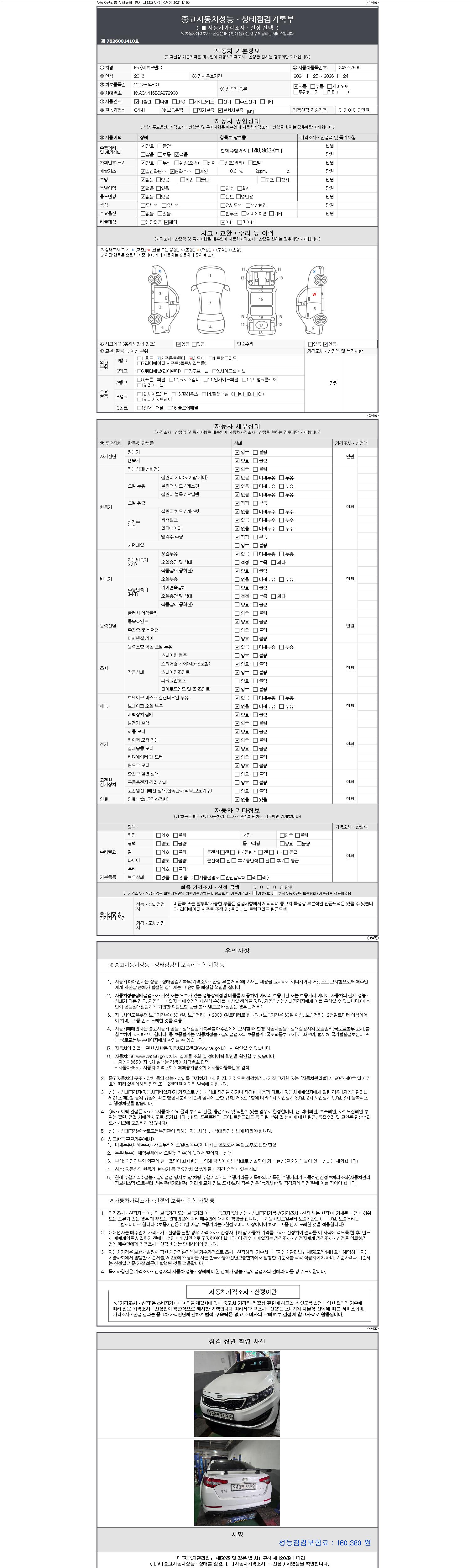 -중고자동차 매매업자를 통해 차량을 구입하실 경우 반드시 "중고자동차 성능, 상태점검 기록부"를 교뷰 받으셔야 하며, 매매업자는 반드시 의무 교부 하여야 압니다.