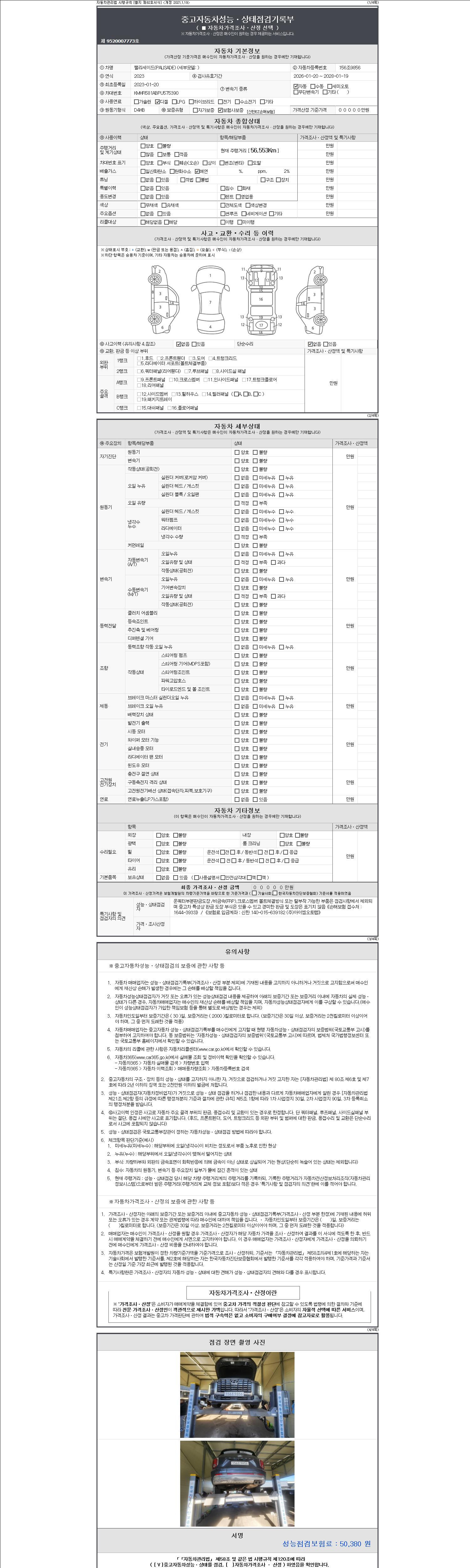 - 2. 차량 등록증이나 성능점검지 등을 상담자에게 요청및 확인하시고 사전에 미리 점검 하시기를 권유드립니다.