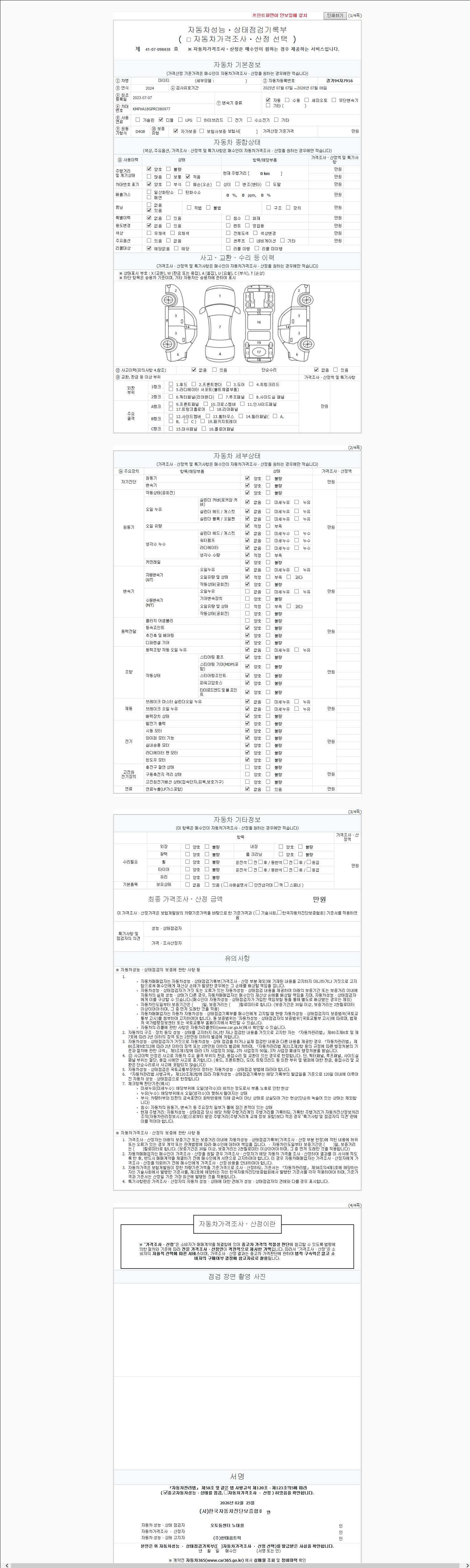 - 2. 차량 등록증이나 성능점검지 등을 상담자에게 요청및 확인하시고 사전에 미리 점검 하시기를 권유드립니다.