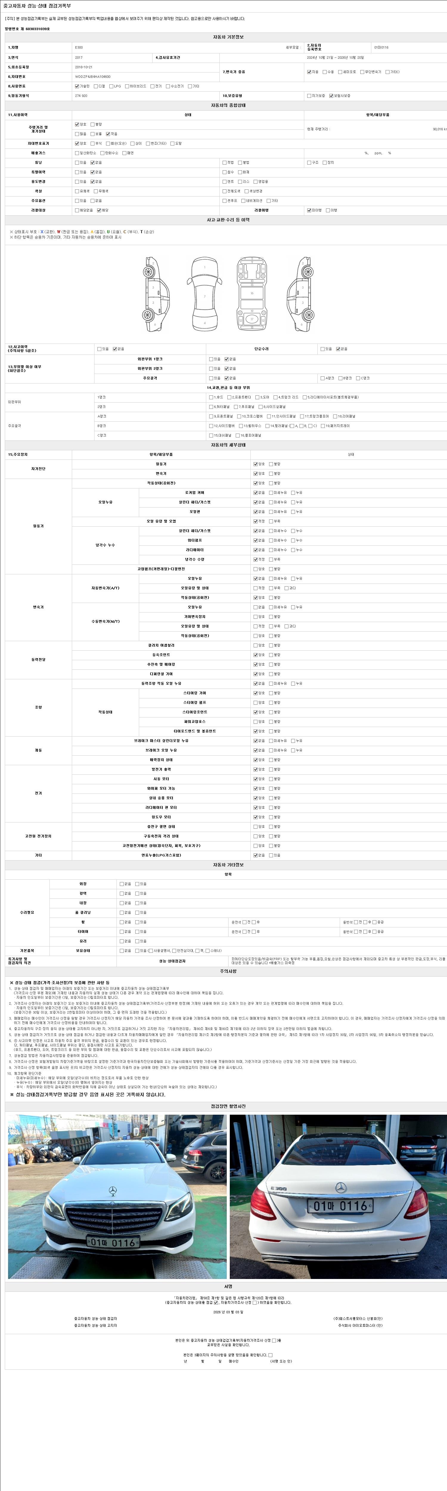 - 2. 차량 등록증이나 성능점검지 등을 상담자에게 요청및 확인하시고 사전에 미리 점검 하시기를 권유드립니다.