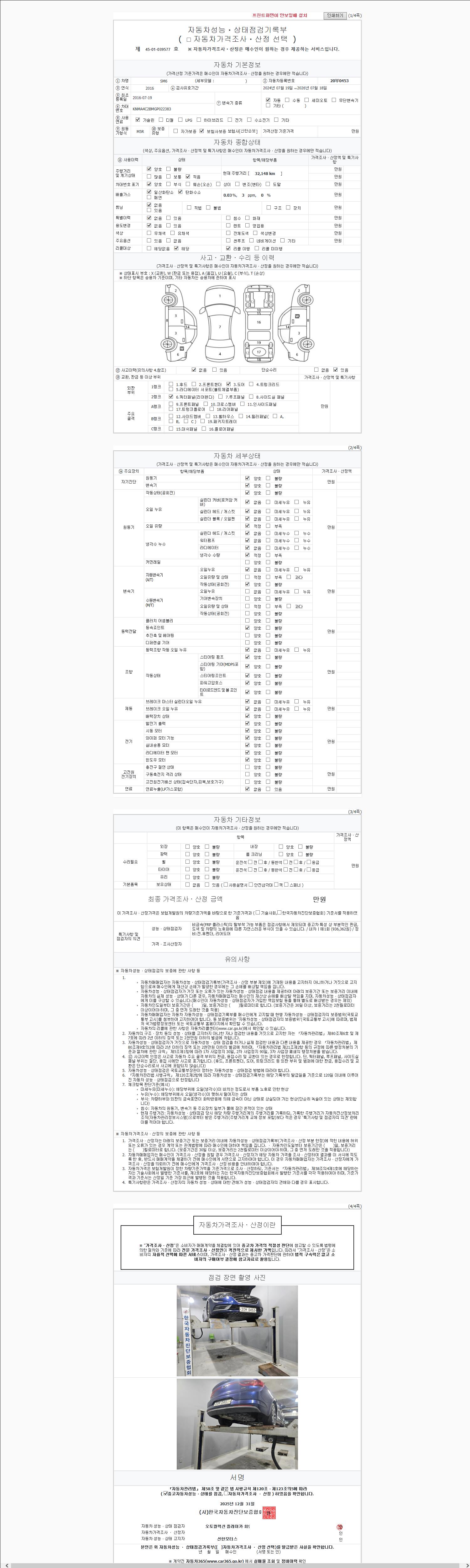 - 사고유무 : 성능기록부 참조